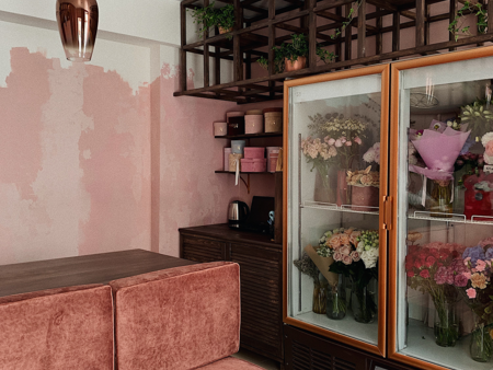 Над дизайном букетной работала студия @tolk.work. Основной акцент помещения сделан на интерьерной росписи стены в рабочей зоне, которую выполнила художница и декоратор @dubrovskaya7. Букетная реализована в гармоничных благородных оттенках Borolo 65 и Borolo 115, использована стойкая экологичная краска #Amphibolin.