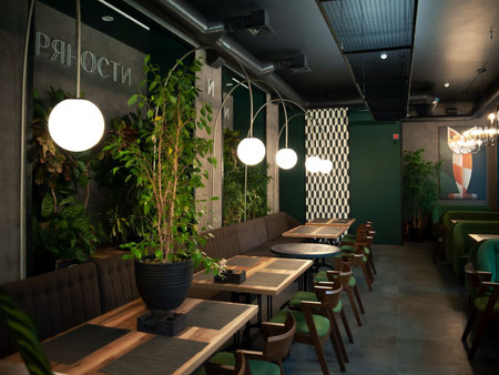 - Зелёный интерьер ресторана в Гомеле